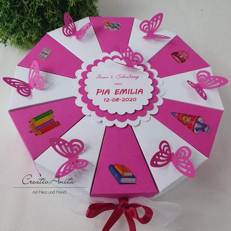 Schachteltorte zum Schulanfang - 1stöckig in Pink-Weiß