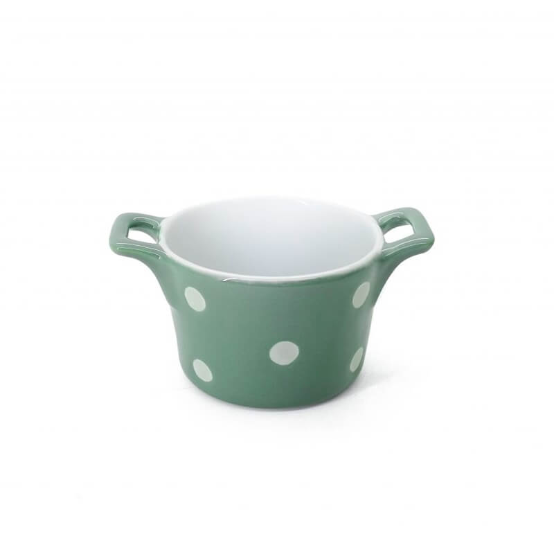 Die Isabelle Rose Ofenform mit Punkten ist eine hochwertige Keramikauflaufform mit praktischen Griffen. Tolles Punktedesign.