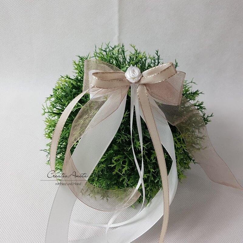 Autoschleife - Antennenschleife TAUPE mit Weiß oder Creme kombiniert