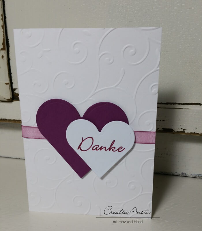 Ein farblich abgestimmtes Satinband umschlingt die Karte.