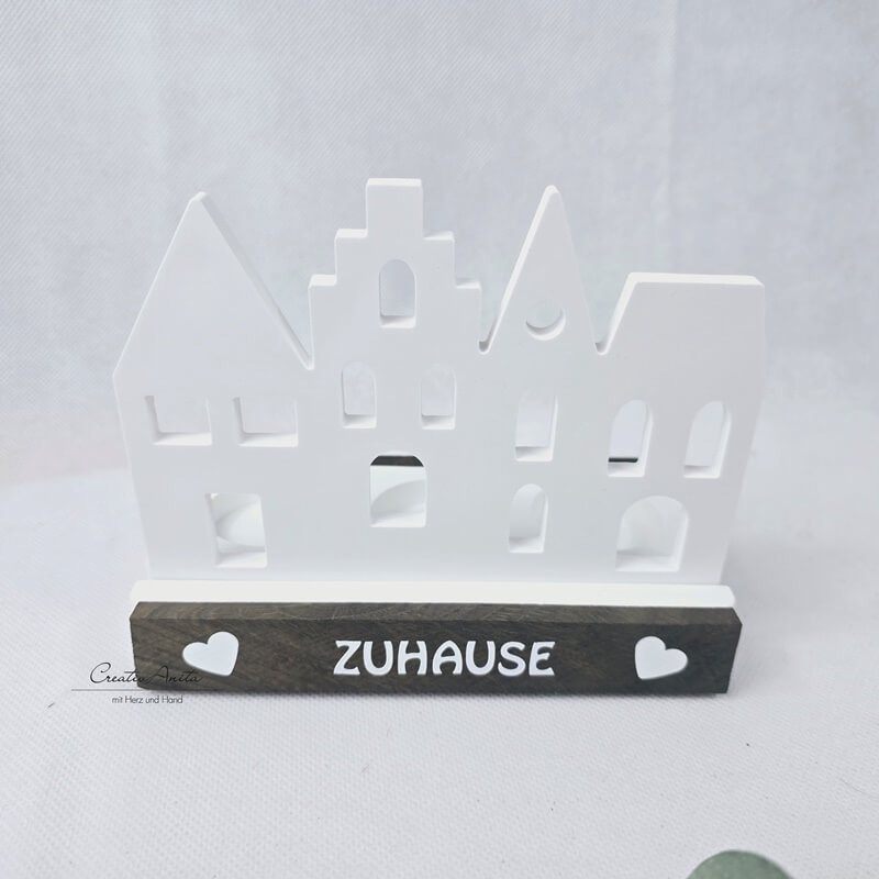 3fach-Teelichthalter mit Einschieber -Häuser- Zuhause