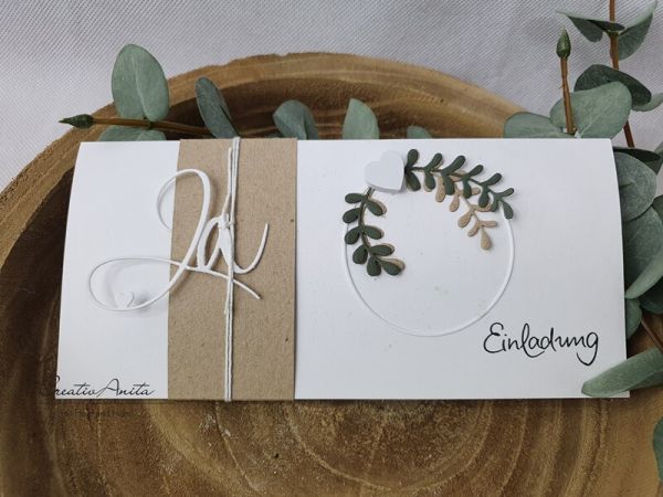 Einladungskarte Green Nature mit weißem Holzherz