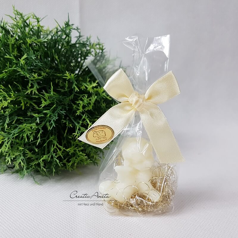 liebevoll verpackt und dekoriert mit Engelshaar in Cellophan.