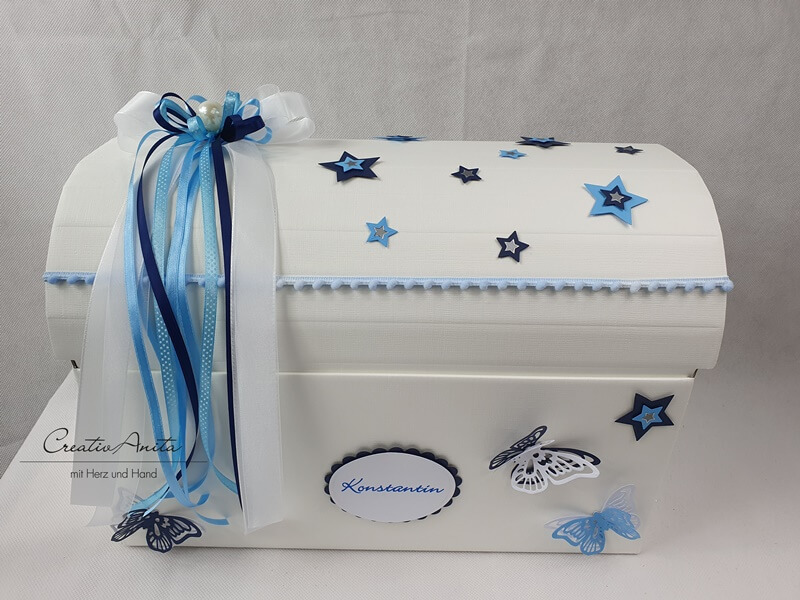 Erinnerungsbox - Erinnerungstruhe in Form einer Truhe für das STERNENKIND mit Sternen & Schmetterlingen