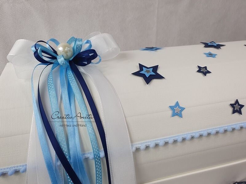 Erinnerungstruhe Sternenkind mit Sternen -Blau- mit Perle