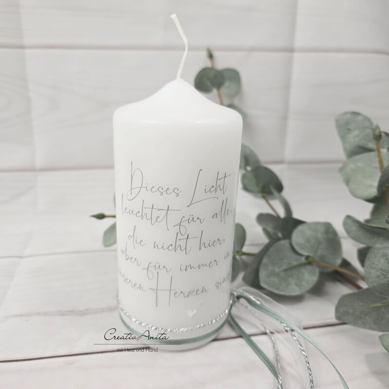Gedenkkerze - Trauerkerze - Erinnerungskerze - Hochzeit Midi -Dieses Licht- eukalypthus-silber