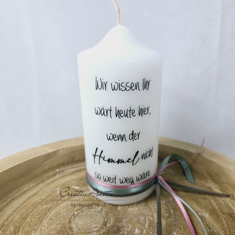 Gedenkkerze - Trauerkerze - Erinnerungskerze - Hochzeit Midi -Wir wissen...-