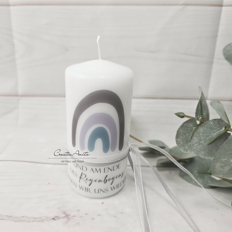 Gedenkkerze - Trauerkerze - Erinnerungskerze - Regenbogen mit Spruch