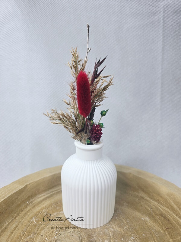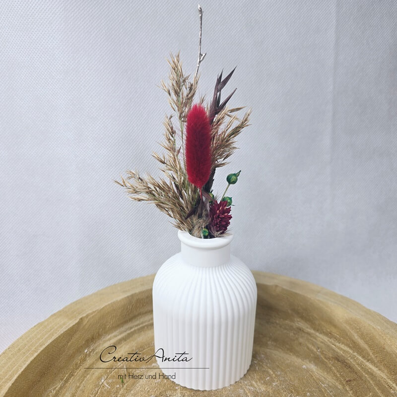 Geriffelte Vase inkl. Trockenblumen bauchig -Rot-