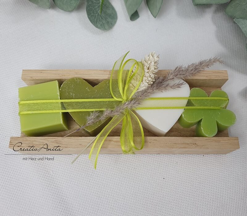 Herzen - Duftnote: Schneerose, Olivenöl 25g, Margerite - Duftnote: Lemongras, 15g, Seifenwürfel - Duftnote: Lemongras, 20g