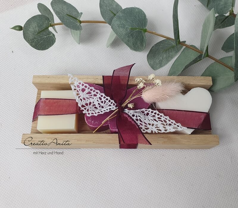 Herz - Duftnote: Schneerose 25g, Schmetterling - Duftnote: Orchidee, 38g, Seifenwürfel - Duftnote: Classic, 20g
