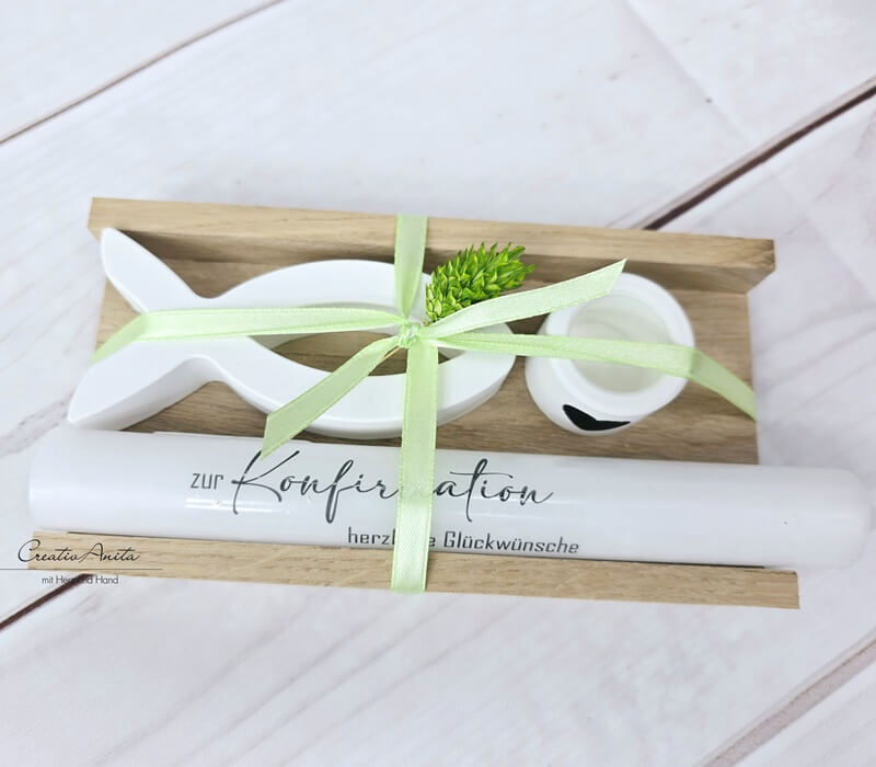 Geschenkset Anlaß zur Auswahl mit Kreuz & Fisch aus Beton - GRÜN
