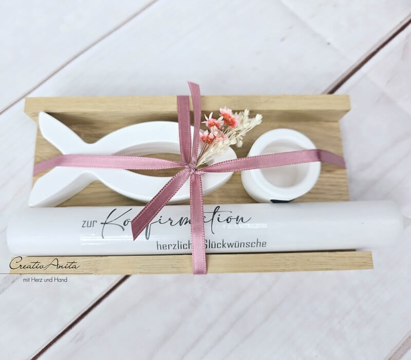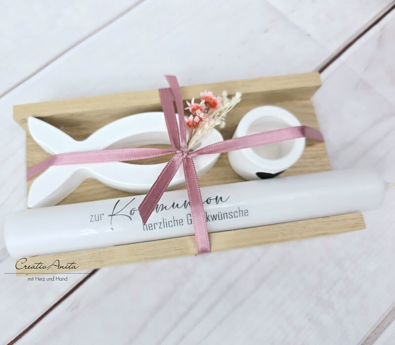 Geschenkset Anlaß zur Auswahl mit Fisch und Kerzenständer aus Beton - ROSA