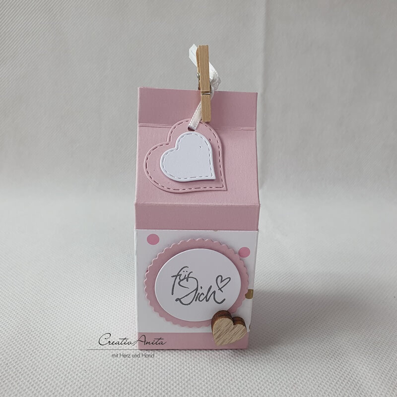 Geschenkverpackung Milchtüte mit Motivpapier in Rosa mit Punkten