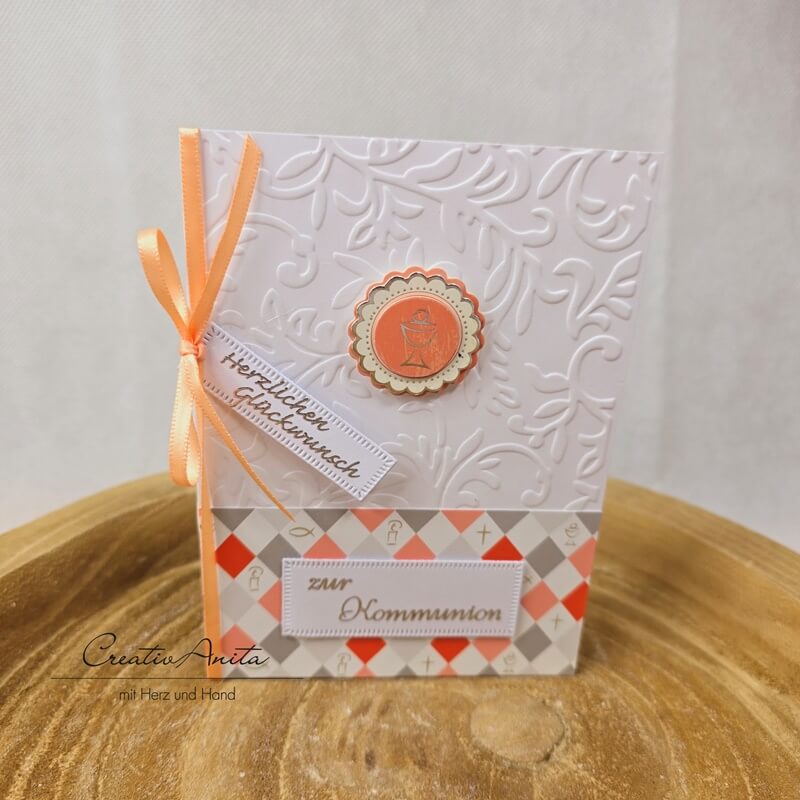Glückwunschkarte Apricot-Silber zur Kommunion