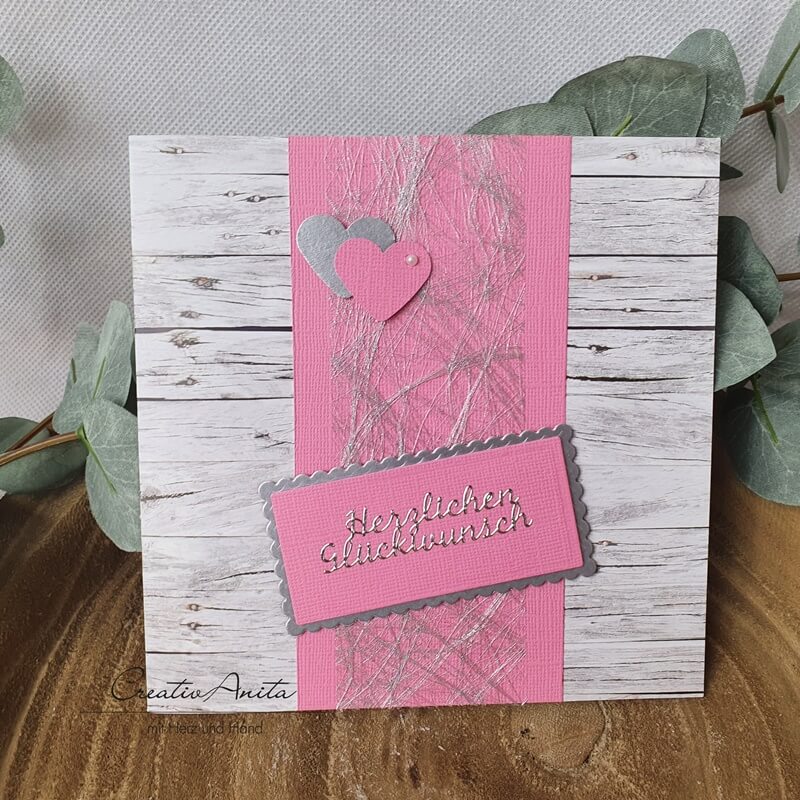 Glückwunschkarte Geldgeschenk Hochzeit Holz Shabby Rosa-Silber