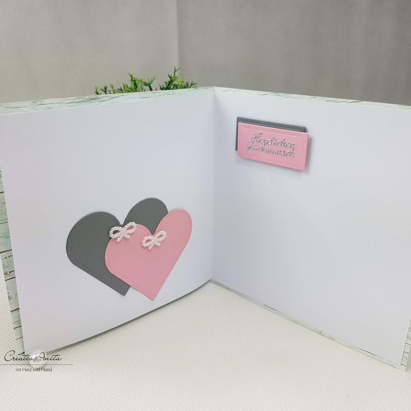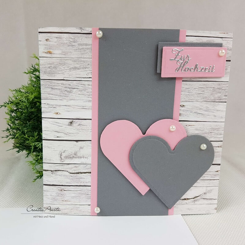 Glückwunschkarte im Shabby-Style mit Perlen - ROSA