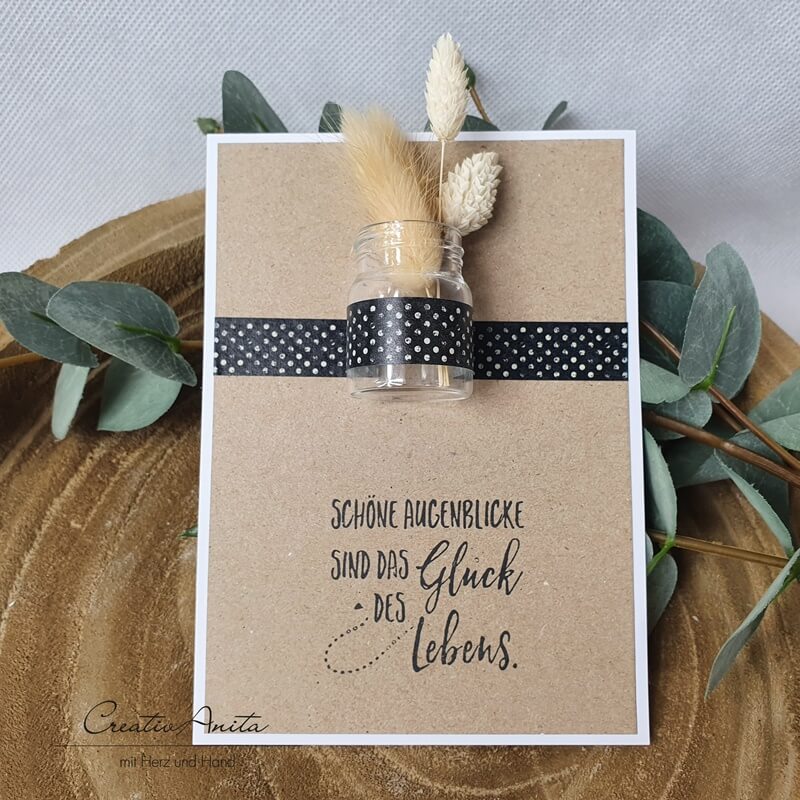 Besondere Glückwunschkarte mit Glasvase und Trockenblumen Natur - Freundinnengeschenk
