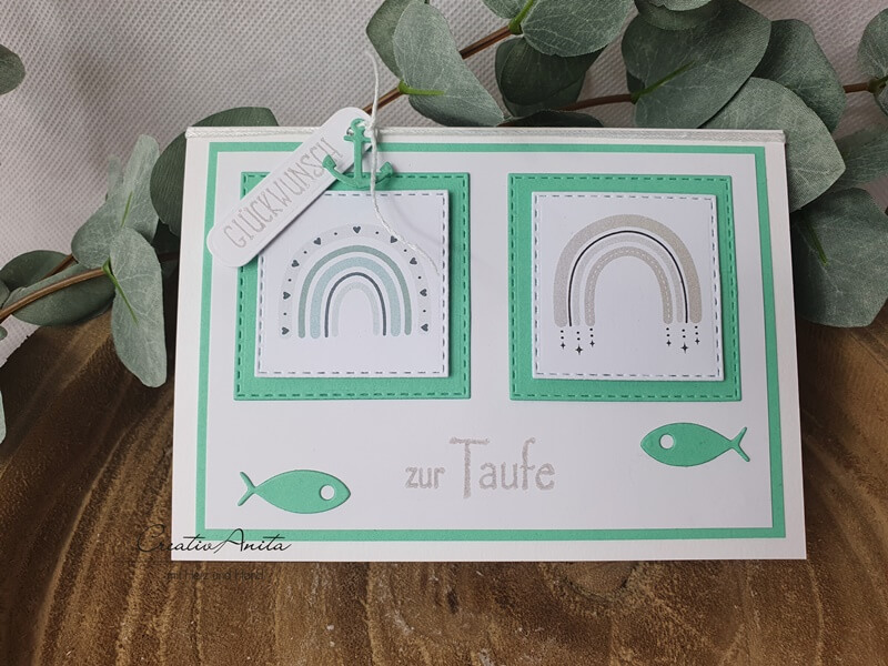 Glückwunschkarte zur Geburt, Taufe oder Kindergeburtstag mit Regenbogen Mint