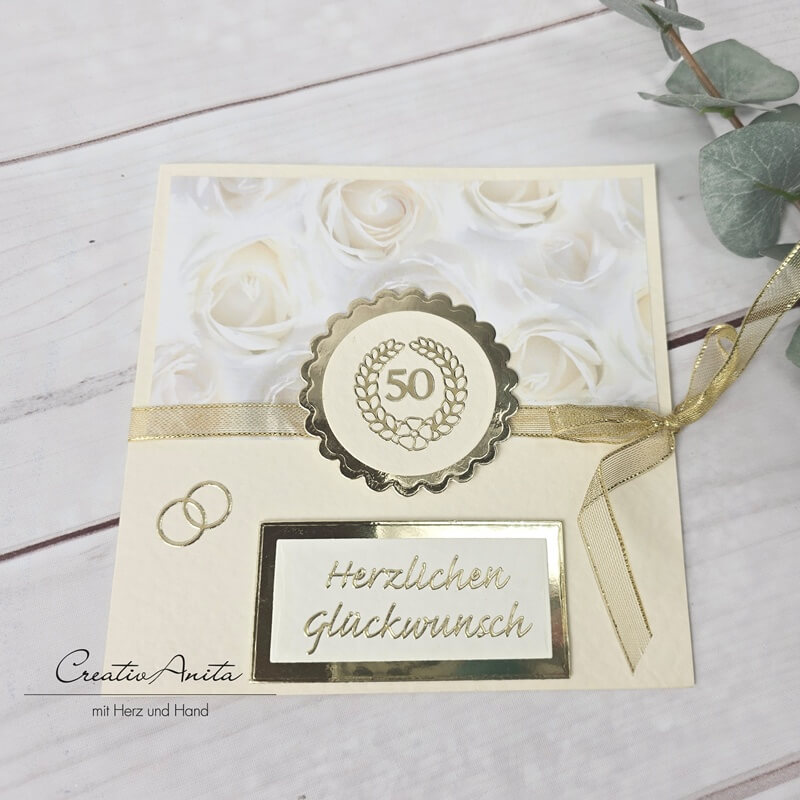 Glückwunschkarte zur Goldenen Hochzeit gold-creme