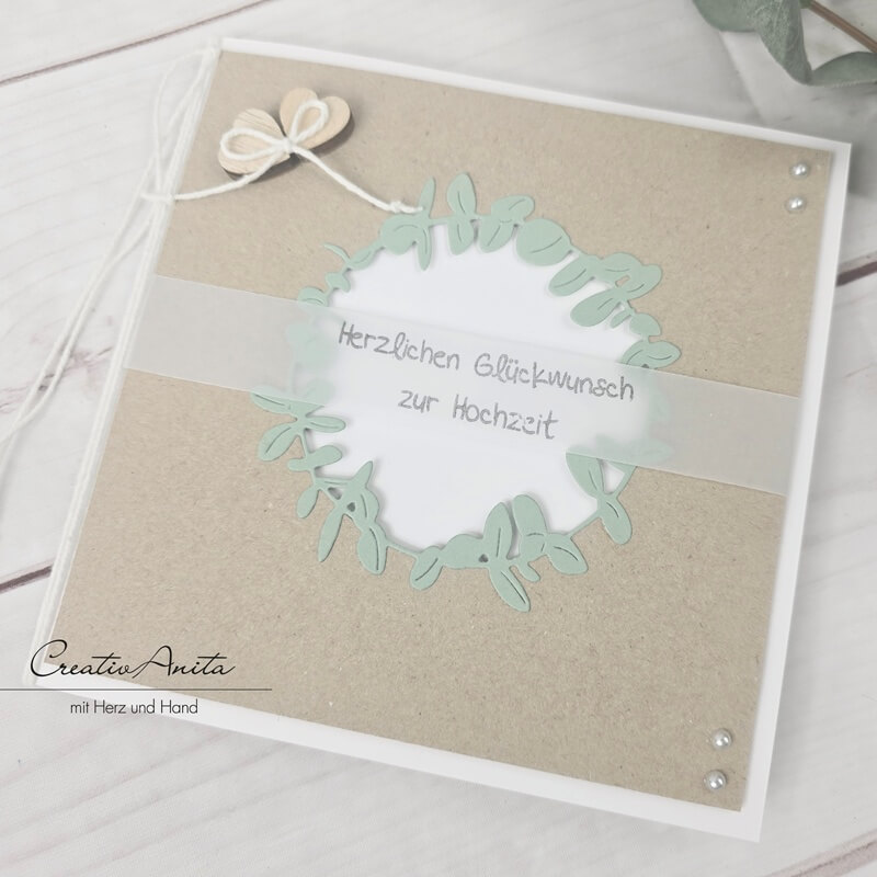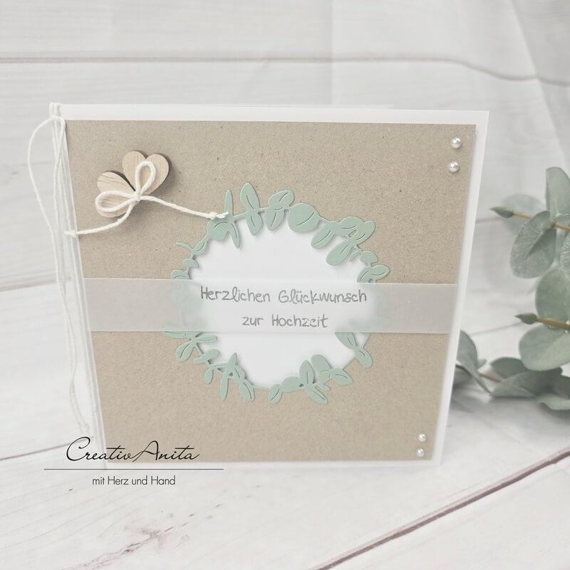 Glückwunschkarte zur Hochzeit - Kraftpapier - Herzen - Eukalypthus