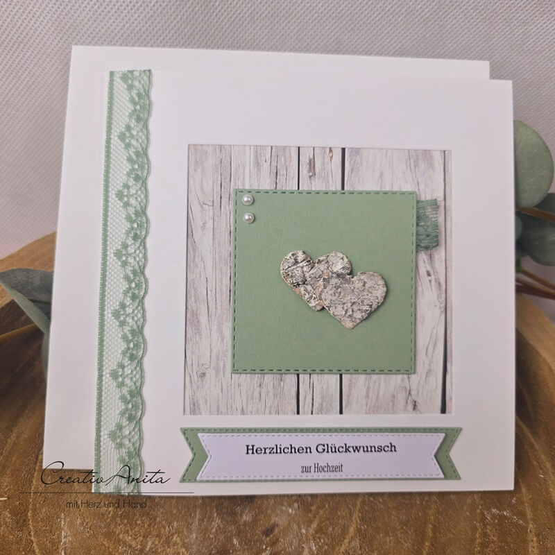 Glückwunschkarte zur Hochzeit mit Herzen aus Birkenholz - SPITZE