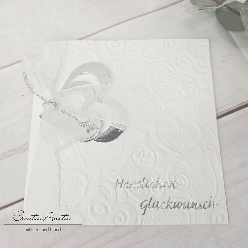 Glückwunschkarte zur Hochzeit - Schlicht und Edel - Silberherzen