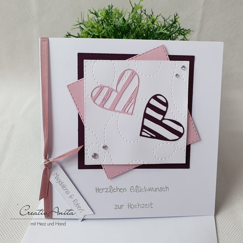 Glückwunschkarte zur Hochzeit - Weiß-Altrosa-Aubergine