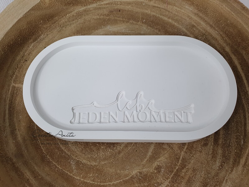 Handgemachte Beton-Schale in ovaler Form mit Schriftzug -Lebe jeden Moment-