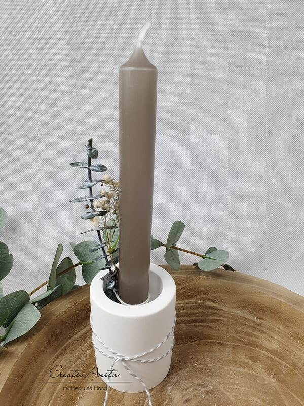 Kerzenhalter 2in1 - Stabkerzen- und Teelichthalter mit Kerze - weiß-braun