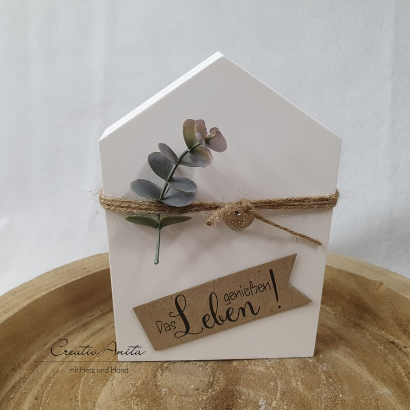 Handgemachtes Haus aus Beton, dekoriert mit Eukalypthus, Groß