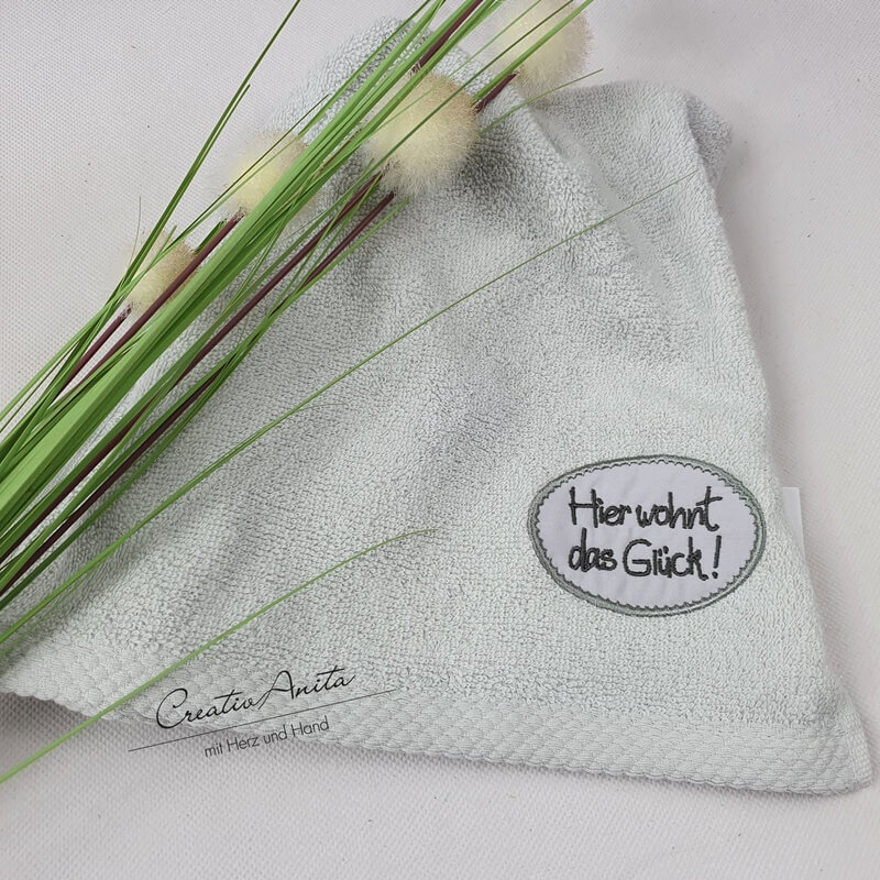 Super flauschiges Gästehandtuch bestickt -Hier wohnt das Glück-