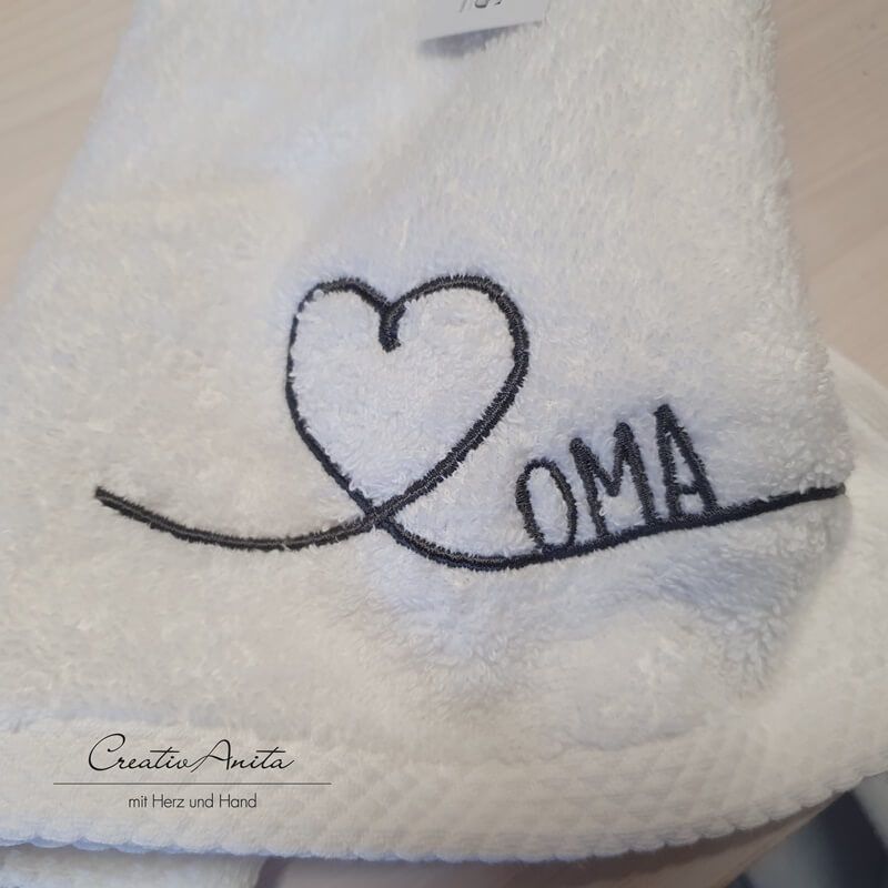 Super flauschiges Gästehandtuch bestickt mit geschwungenem Herz und dem Schriftzug -Oma-