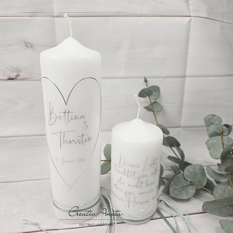 Hochzeitskerze im Schlichten Stil -Modern Heart- eukalyphtus-silber