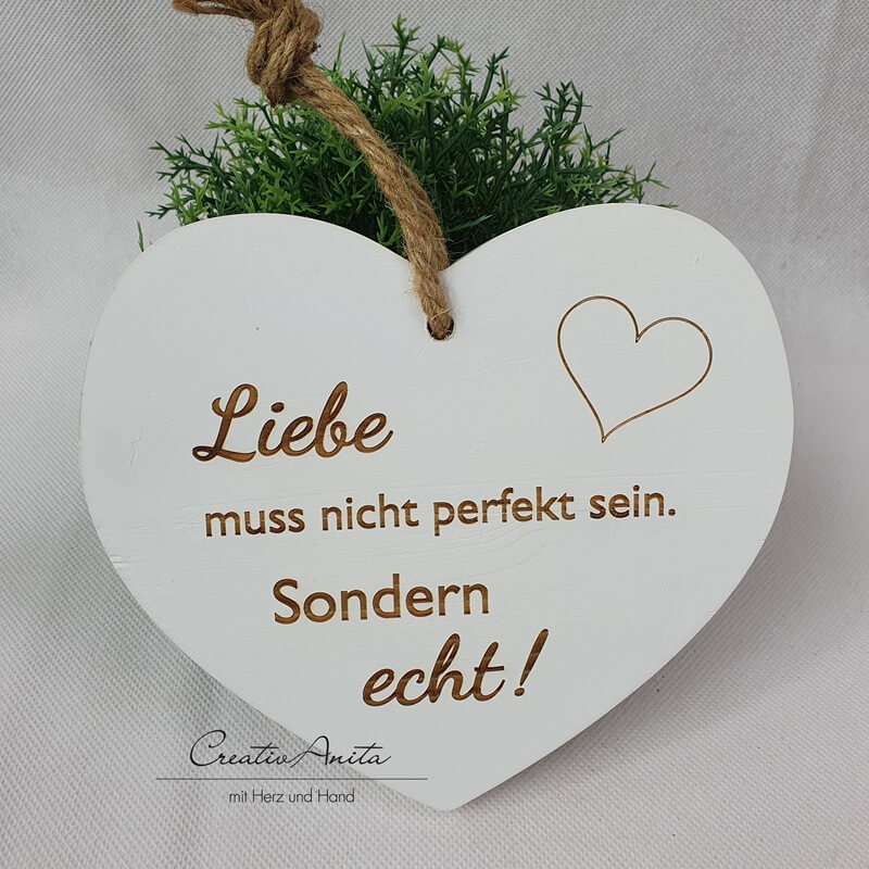 Holzherz "Liebe muß nicht..." - Schild zum Hängen mit Jutekordel, Shabbystil