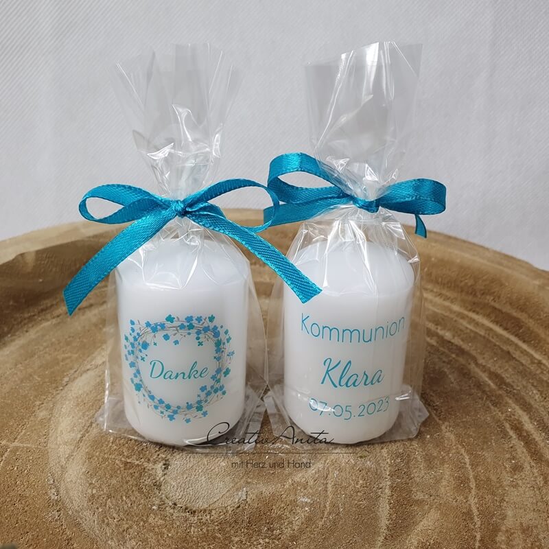 Kerze als Gastgeschenk "Danke" - Blau