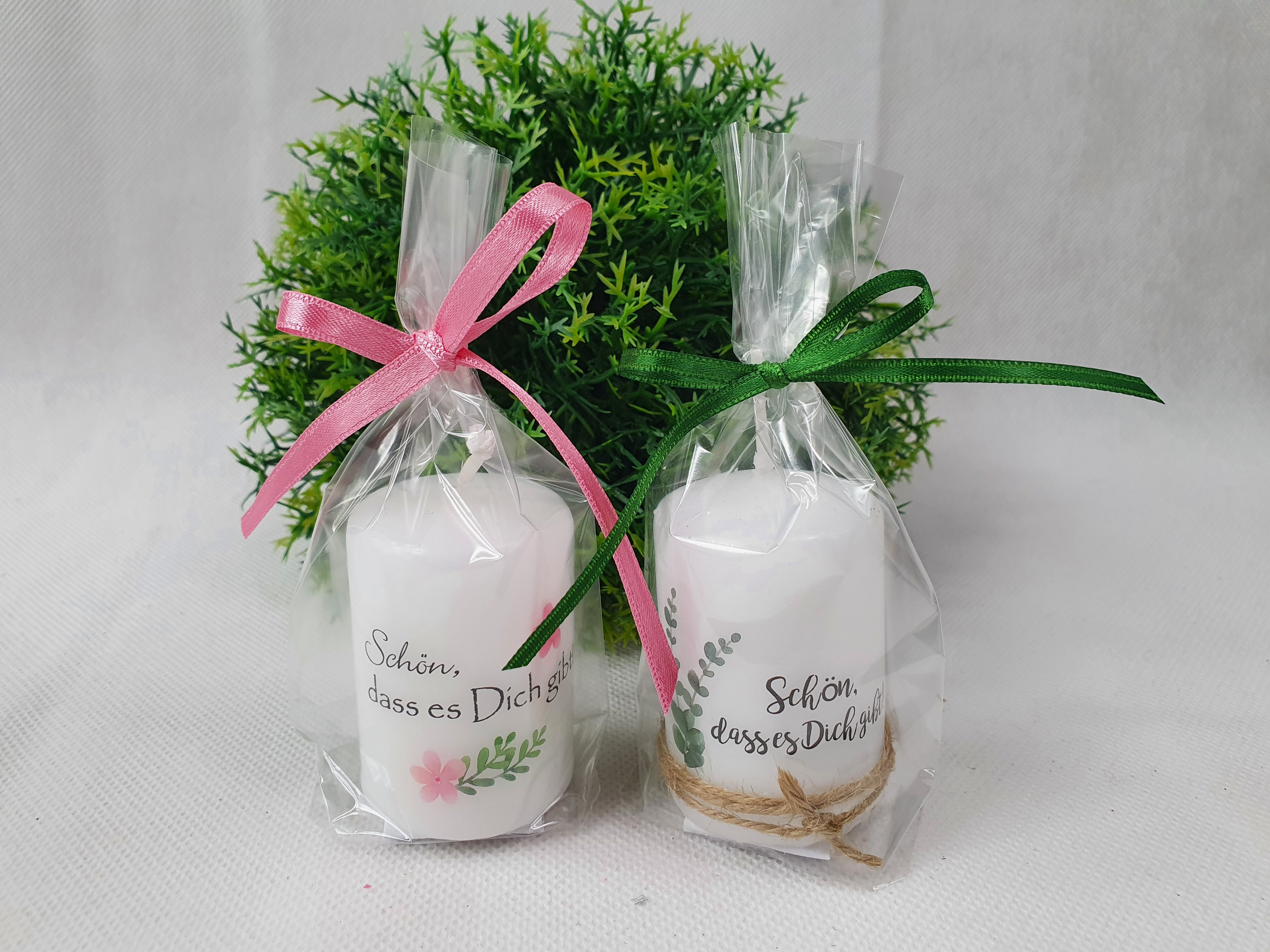 Kerzenset als Mitbringsel - 2 Stück "Schön, dass es Dich gibt"