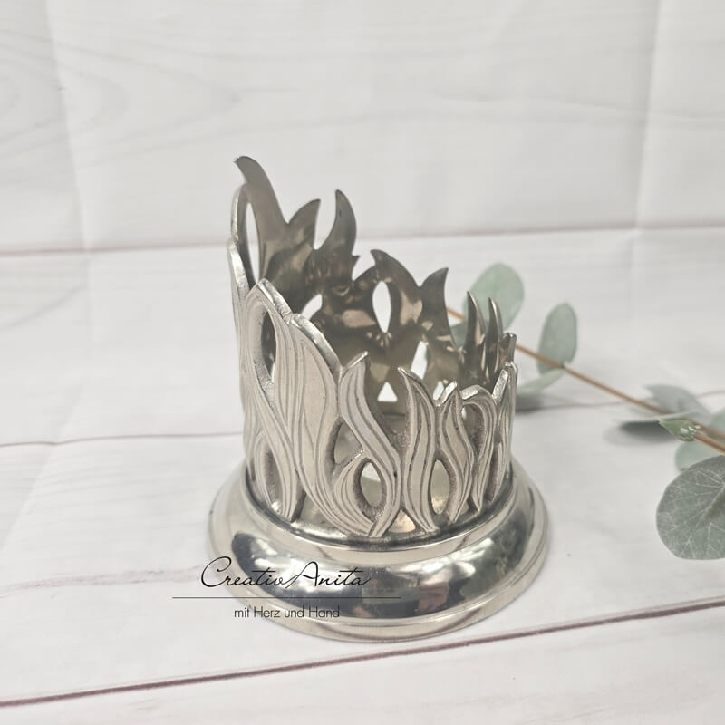 Kerzenhalter rund silber -Flamme-