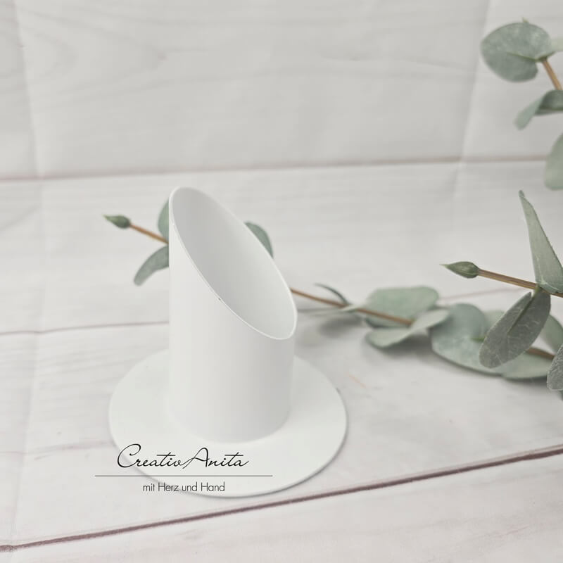 Kerzenständer aus Metall in weiß, 4 cm - Kommunionkerze, Taufkerze