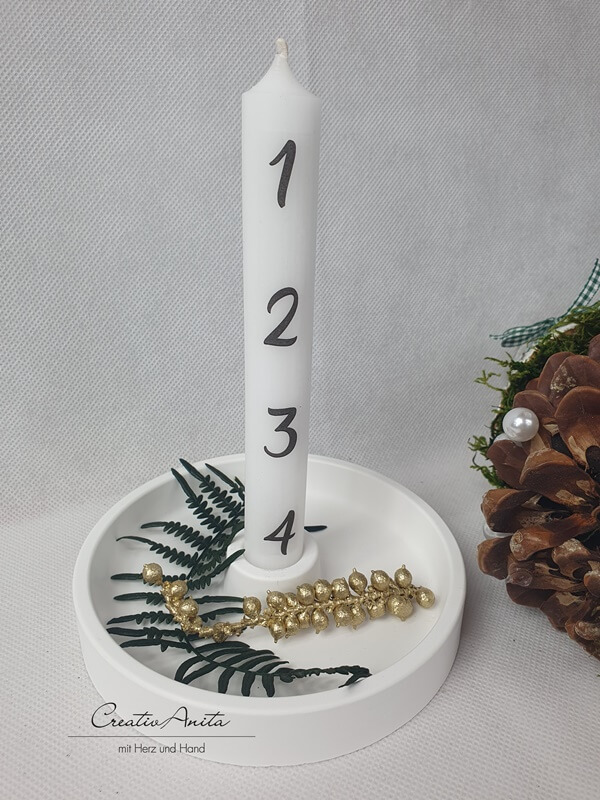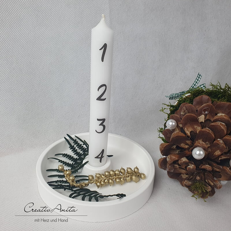 Kerzenständer - Kerzenteller mit Adventskerze - dekoriert