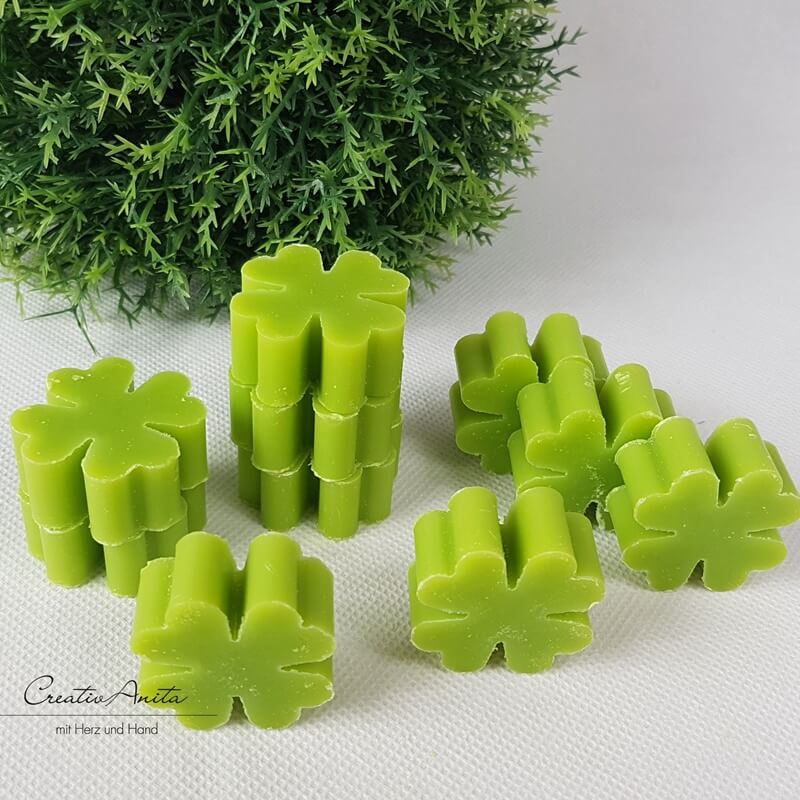 10 Kleeblätter in der Duftnote Birne. Die Seifen-Kleeblätter sind ideal als kleine Mitbringsel, Glücksbringer, als Tischdeko, zum Befüllen von GiveAways/Gastgeschenken oder als Füllmaterial von Duftsäckchen, oder einfach für den Kleider- oder Wäscheschrank. Der Fantasie sind keine Grenzen gesetzt.