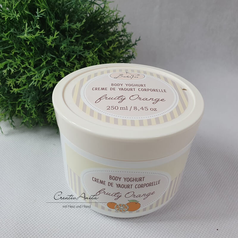 Verwöhne deine Haut nach dem Duschen oder Baden mit einer Extraportion Feuchtigkeit! Der BadeFee Körperjoghurt Fruity Orange versorgt dich mit wichtigen Nährstoffen und natürlichen Inhaltsstoffen. Reichhaltiges Mandelöl, zarte Aloe Vera und natürliches Betain spenden langanhaltende Feuchtigkeit und Elastizität. Währenddessen tauchst du ein in den fruchtigen Duft frischer Orangen.