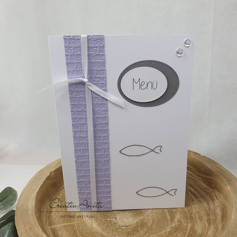 Menükarte zur Kommunion mit Fische -Christlich- Lavendel-Flieder