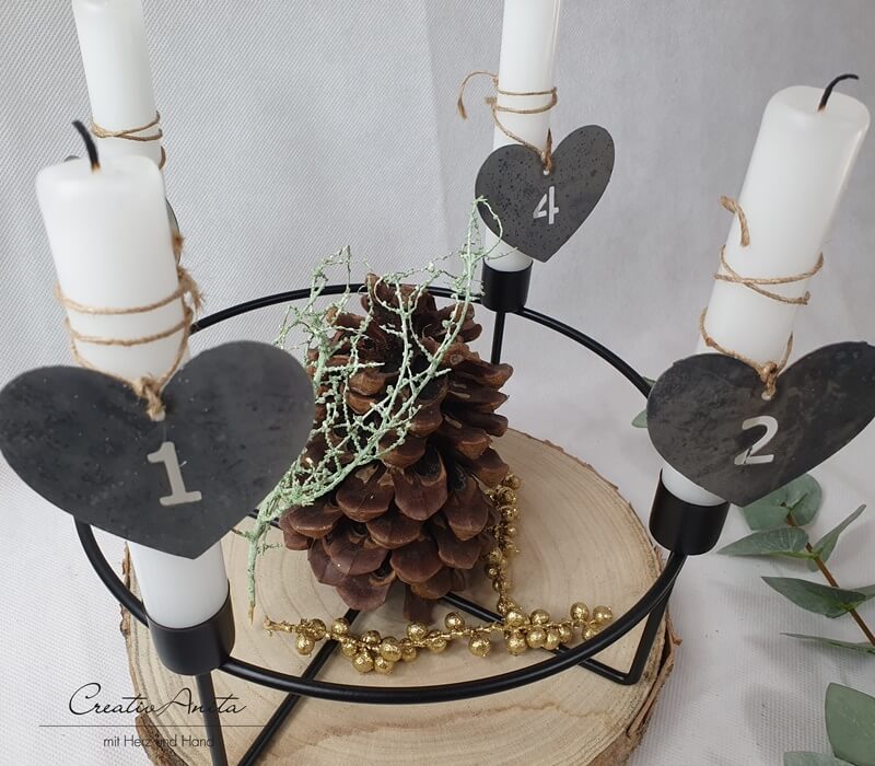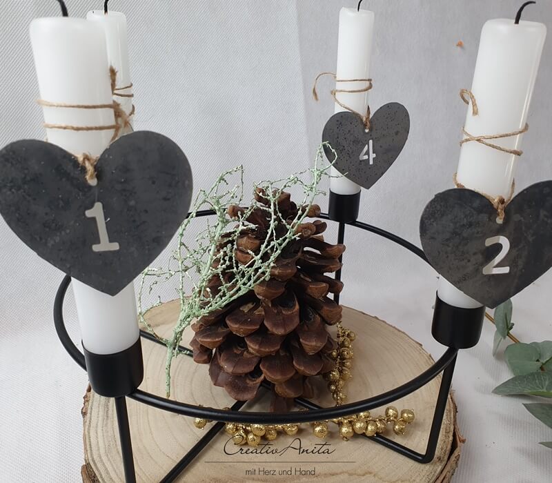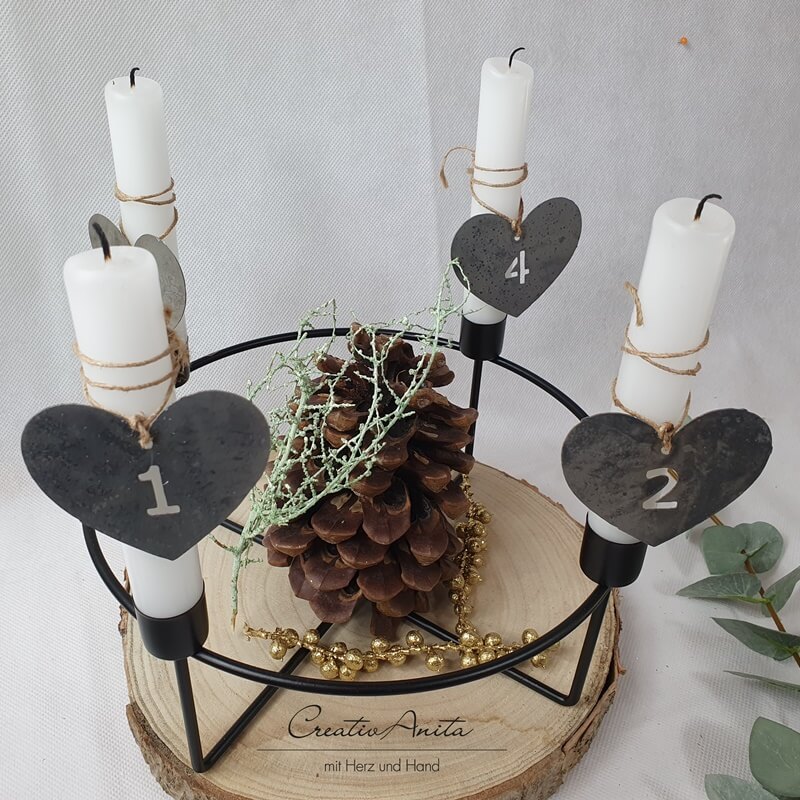 Metall Adventskranz in schwarz - inkl. Zahlen, Kerzen und Dekoration