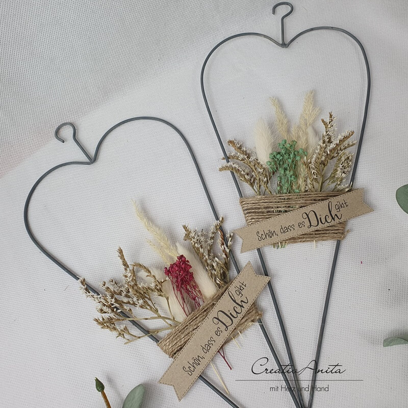 Metallherz mit Trockenblumen dekoriert, Geburtstagsgeschenk GRÜN