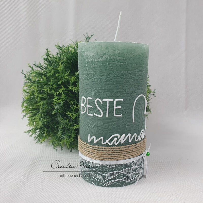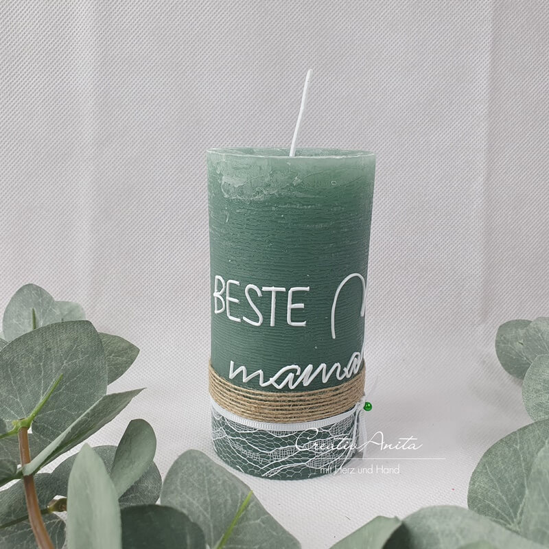 Muttertagskerze - Geschenk "Beste Mama" in Eukalypthus