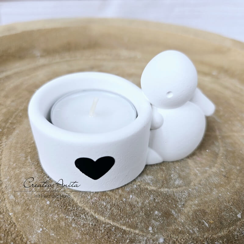 Ostergeschenk Teelichthalter -Osterhase- dekoriert mit Herzerl