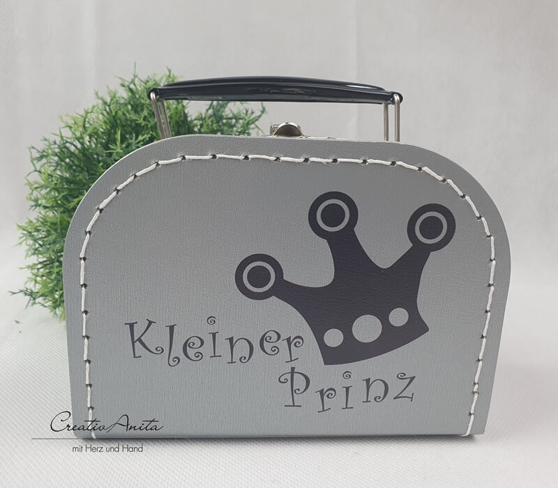 Pappkoffer in Silber mit Krone "Kleiner Prinz" - Kinderkoffer