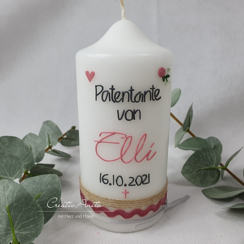 Patenkerze passend zur Taufkerze -Blätterkranz mit Rosen-