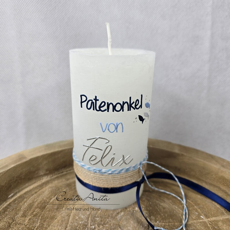 Passende Patenkerze zur Taufkerze "Fische in Blau-Silber"!